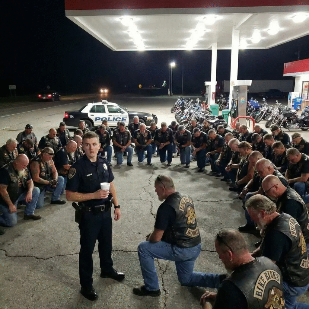 When Ryan pulled into the station, he noticed motorcycles everywhere.